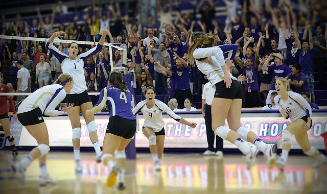 freshman setter Katy Beals served three consecutive aces to put the Huskies